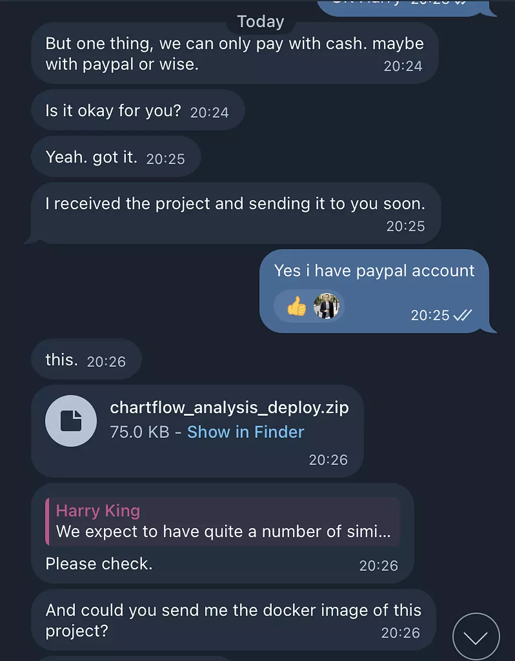 بعدش برام یه فایل زیپ رمزدار “chartflow_analysis_deploy.zip” فرستاد.